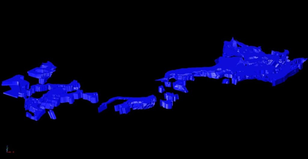 Currently, the model is available as a 3D pdf -file. To view the model, the 3D content must be enabled in the pdf reader. The actual modelling work was made by Paula Salminen and Jouni Luukas, using the GEOVIA Surpac software. The model consists of several files. The 3D pdf has been compiled based on these files, and different lithological bodies and structures appear as layers in the 3D pdf.